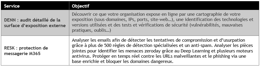 Ces services sont opérés grâce à des solutions de cybersécurité fournies par des éditeurs de cybersécurité français.