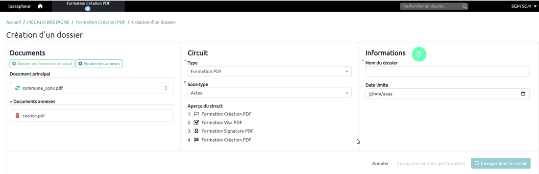 Ce tutoriel explique comment créer un dossier sur le parapheur et l’envoyer dans le circuit de validation et ajouter des notifications.