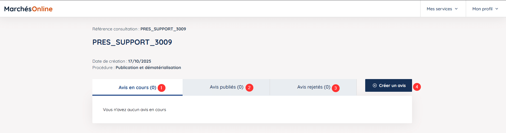 - Voir les avis publiés, les dupliquer et faire des avis rectificatifs ou d’attribution à partir d’avis déjà publiés