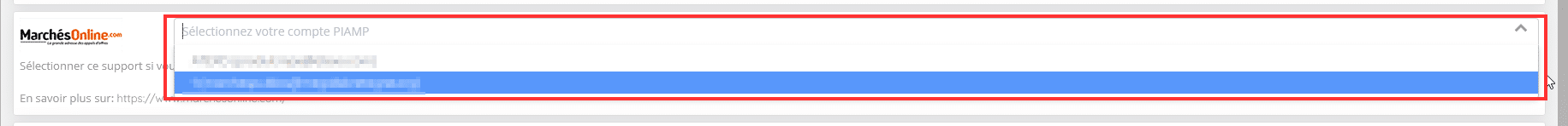 Sélectionnez votre compte BOAMP sur le support “MarchésOnline” situé sous les formulaires de publicité via Atexo