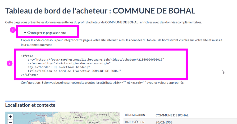 Etape 2 : Trouver le code iframe pour intégrer la totalité des indicateurs de votre organisme sur votre site internet
