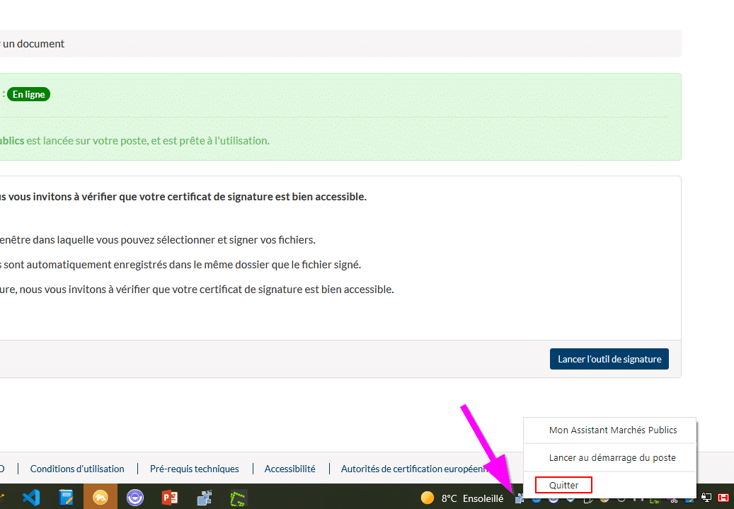 Cliquez ensuite sur « Lancer l’outil de signature » :