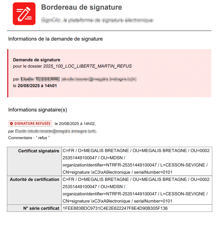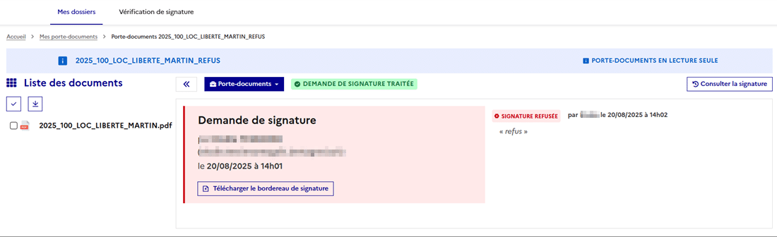 [SIGNATURE EN LIGNE] Collectivité – L’usager a refusé de signer