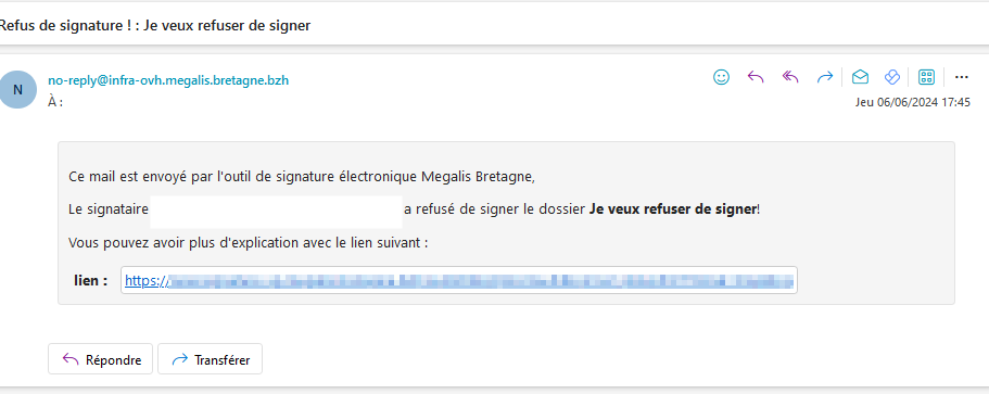 1 - Quand l'usager refuse de signer, l’utilisateur en collectivité reçoit un mail
