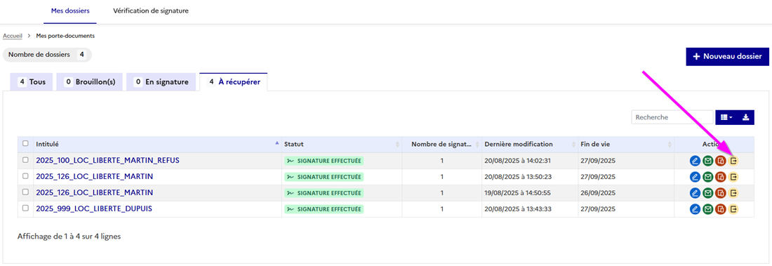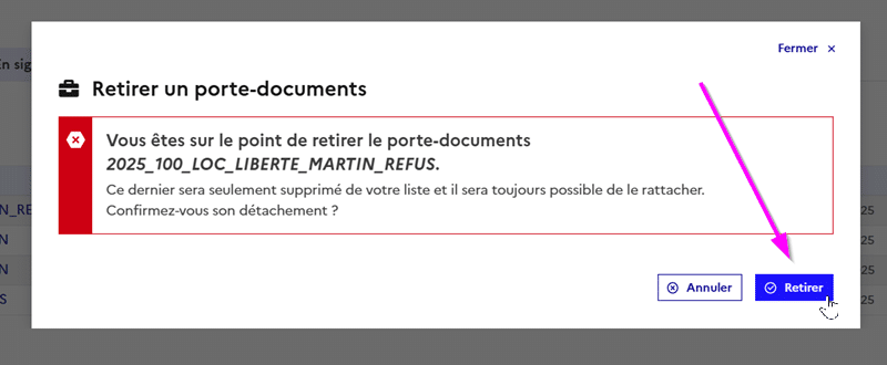 [SIGNATURE EN LIGNE] Collectivité – Supprimer le dossier