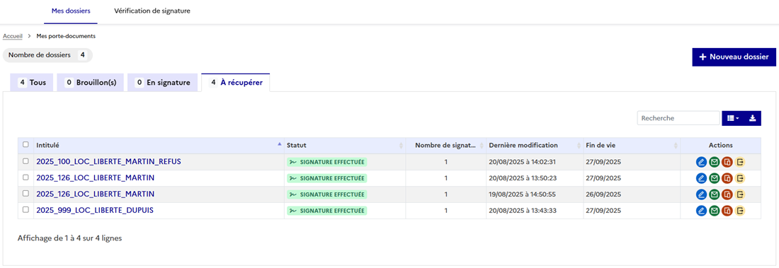 4 - Le dossier a bien été supprimé de votre tableau de bord