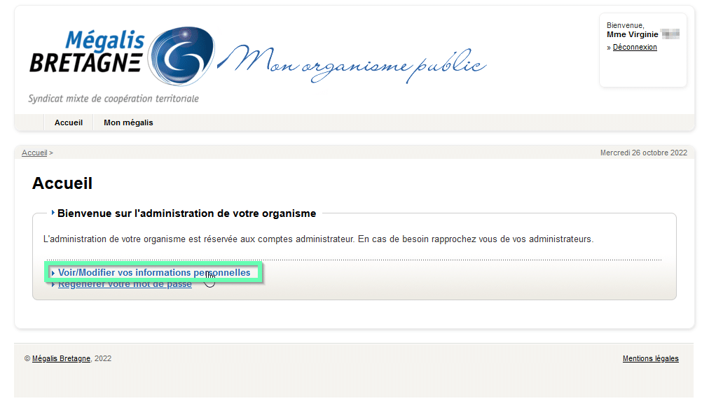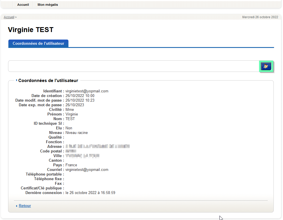 Autre possibilité, si vous êtes Administrateur du compte Mégalis de votre collectivité, allez modifier la fiche agent de l’utilisateur concerné.