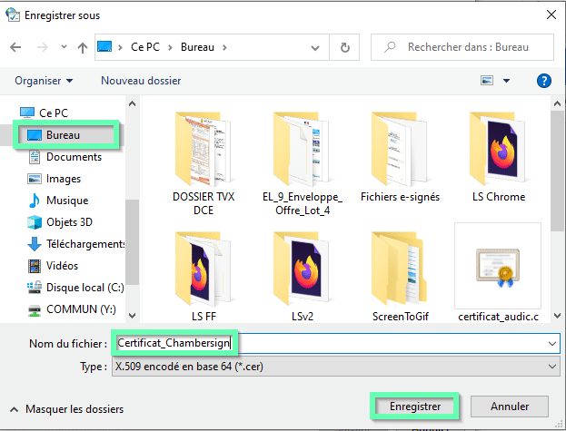 Sélectionner votre Bureau ou un autre répertoire que vous saurez retrouver puis Nommer votre fichier et cliquer sur “Enregistrer”
