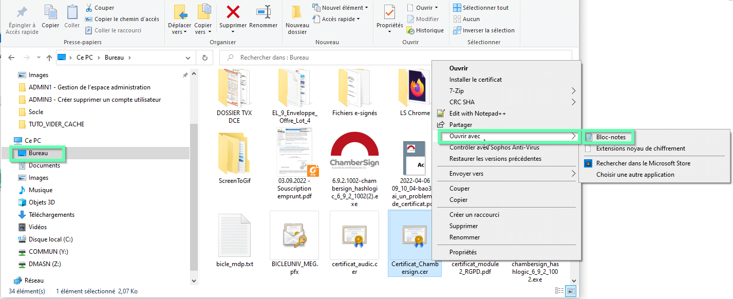 2 – Cliquez droit, ouvrir avec et enfin Bloc-note